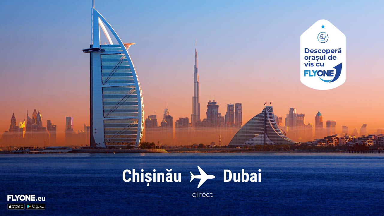 FLYONE va opera zboruri directe spre/din Dubai, chiar din această toamnă. Astfel, datorită acestei curse, sfârșitul verii nu va însemna și sfârșitul sezonului de vacanțe la plajă. Primul zbor spre noua noastră destinație este programat pentru data de 18 octombrie. Cursele directe spre Dubai vor avea printre alte și un impact pozitiv asupra industriei turismului din țara noastră, iar cei din diasporă vor avea posibilitatea de a călători mai ușor. Prețul pentru bilete într-o direcție pornește de la 130 de euro.