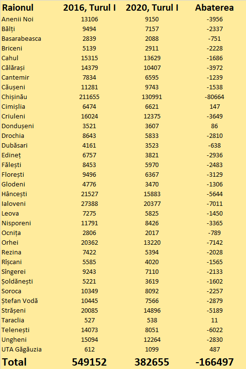 Peste patru ani de zile, timp în care a reușit să fie parlamentar și premier, Maia Sandu a obținut voturile a doar 382 655 de moldoveni aflați în țară, fiind o diferență negativă de peste 166 de mii față de turul I din 2016.