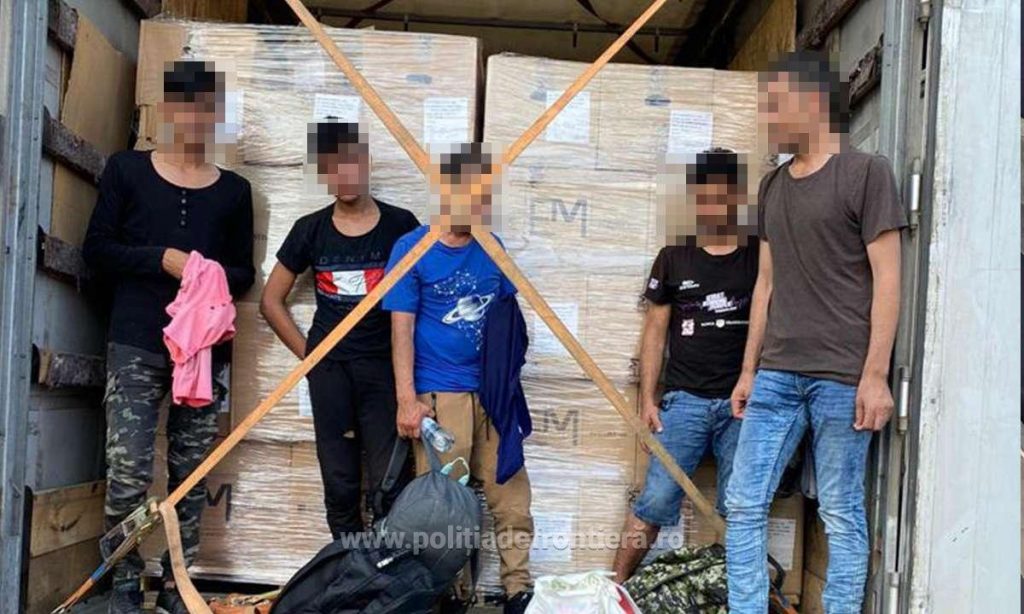 În urma efectuării controlului amănunţit al mijlocului de transport, au fost descoperiți, ascunși în compartimentul pentru marfă, cinci cetățeni străini.