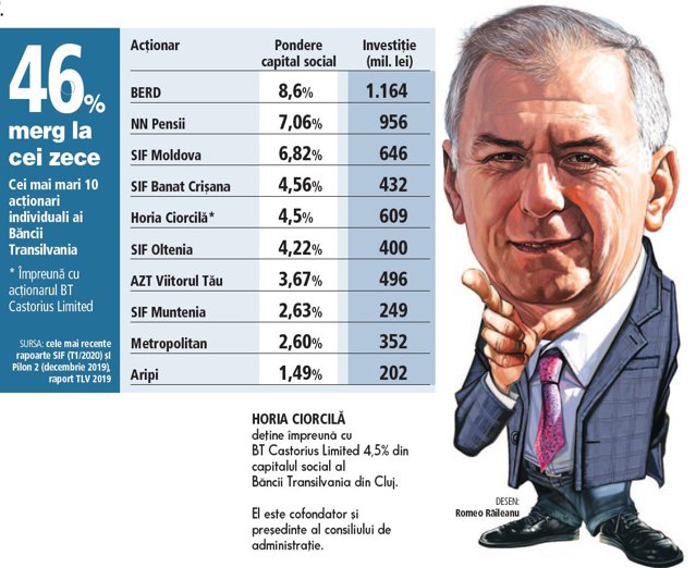 Astfel, potrivit raportului pe 2019, Horia Ciorcilă deţine împreună cu acţionarul BT Castorius Limited 4,5% din capitalul social, adică circa 610 milioane lei.