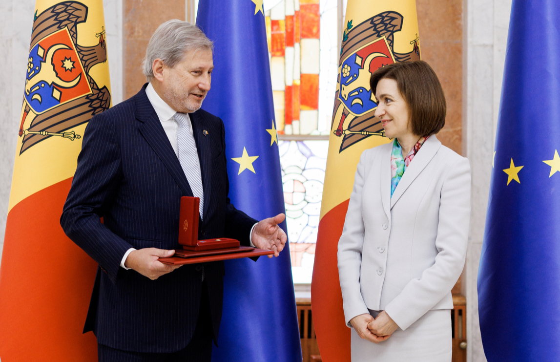 Sandu a mai menționat că Johannes Hahn este un prieten foarte bun al Moldovei și al poporului nostru: „În semn de gratitudine pentru ajutorul consecvent și susținerea neclintită pe care ne-a arătat-o pe parcursul anilor, i-am oferit astăzi distincția „Ordinul de Onoare”.