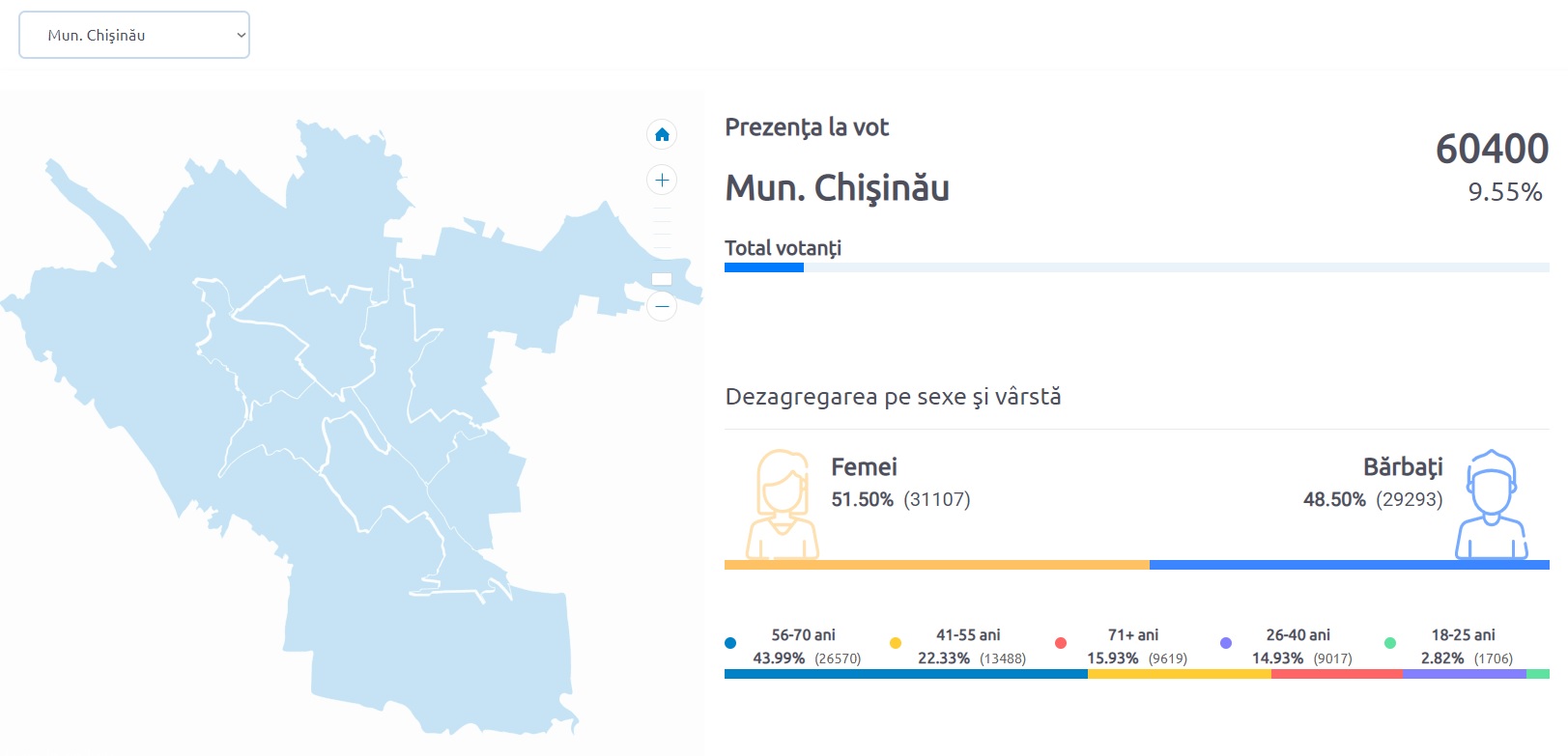 Sectorul Ciocana a înregistrat cea mai mică prezență din municipiul Chișinău, neajungând nici la 10%.