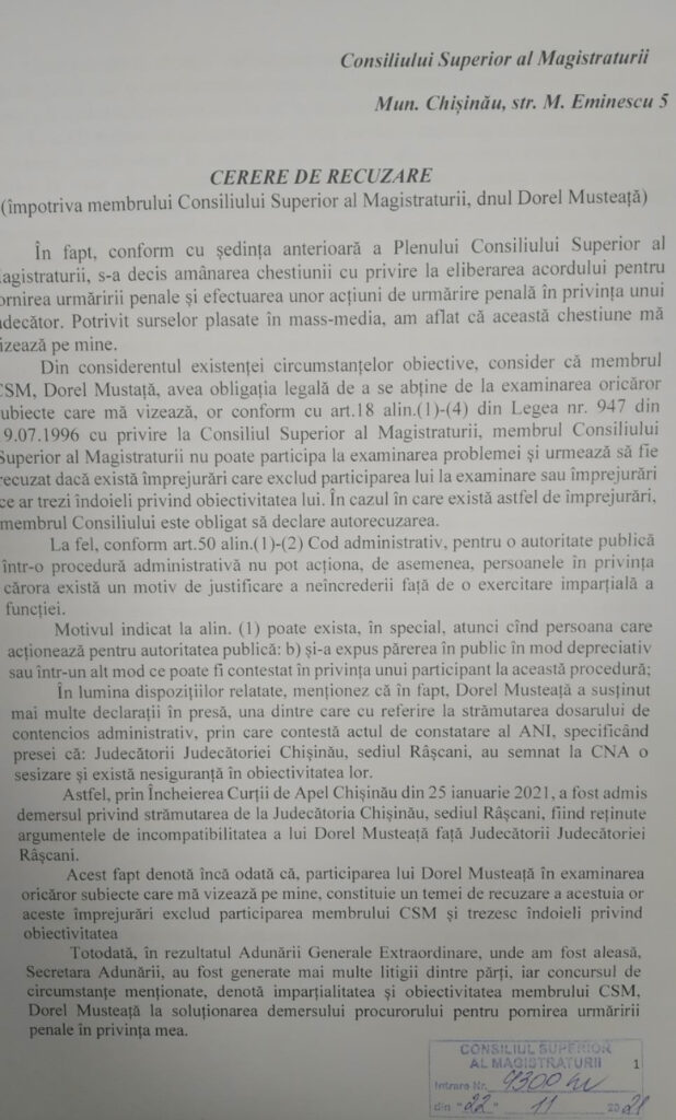 În contextul demersului înaintat la CSM de către procurorul general interimar, cu privire la percheziționarea, reținerea și arestarea unui judecător, în spațiul public au apărut unele informații care asigură opinia publică că, în privința mea au fost constatate abateri disciplinare.