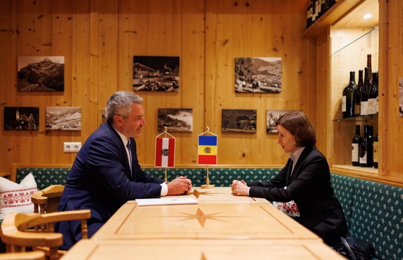 Președintele Republicii Moldova, Maia Sandu, a avut în seara zilei de ieri o întrevedere cu Cancelarul Federal al Austriei, Karl Nehammer, în marja Forumului European de la Alpbach. Oficialii au discutat despre relațiile bilaterale dintre țările noastre, despre cooperarea moldo-austriacă și despre parcursul european al Republicii Moldova, în contextul obținerii statutului de țară candidată la UE.