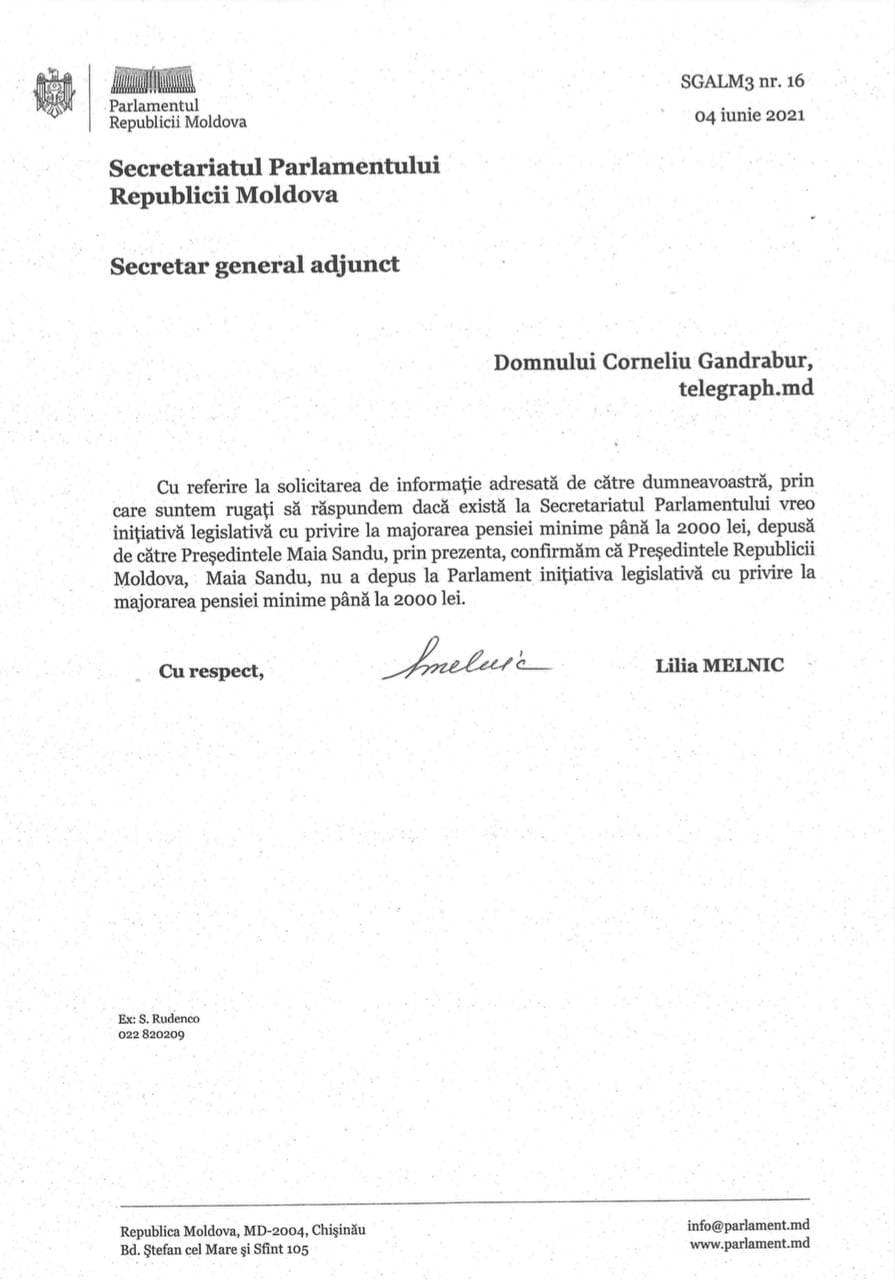 Maia Sandu a mințit cetățenii când a spus că a propus Parlamentului majorarea pensiei minime până la 2000 de lei, iar dovadă sunt registrele cu toate proiectele de lege înregistrate în Legislativ.