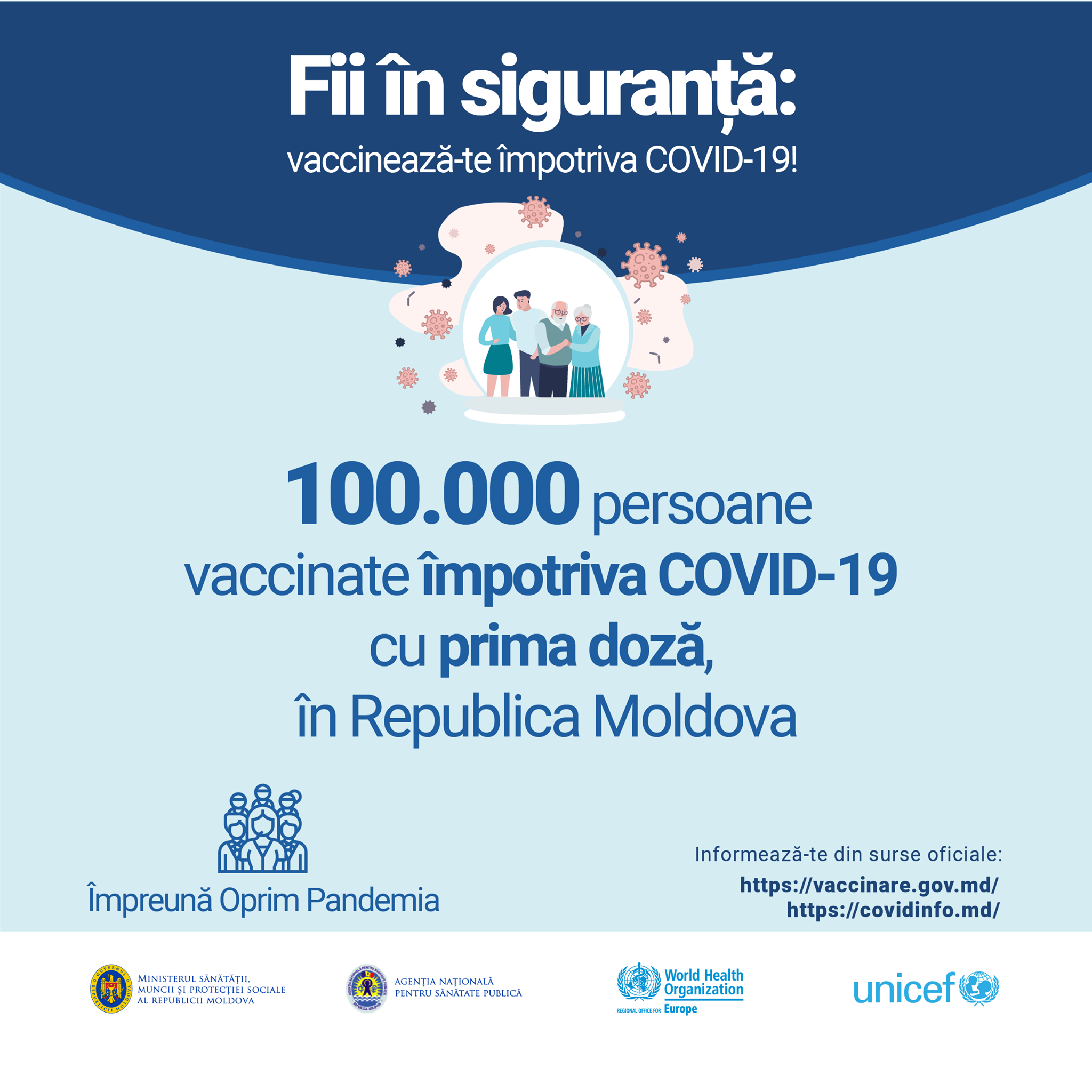 Circa 100 000 de moldoveni au fost vaccinați împotriva COVID-19 cu cel puțin o doză de vaccin, transmite Telegraph.md