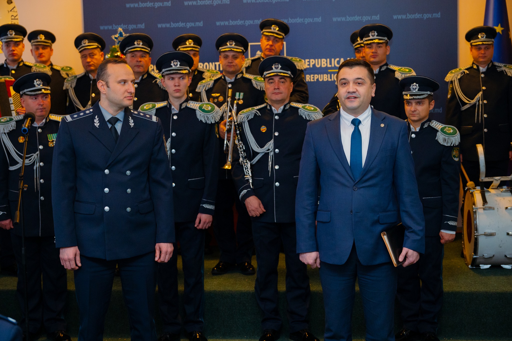 La ceremonia de stimulare a polițiștilor de frontieră, care s-au remarcat cu o activitate exemplară în cadrul instituției, Ministrul afacerilor interne, Adrian Efros și șeful Cabinetului Prim-ministrului Republicii Moldova, Serghei Diaconu l-au prezentat pe noul șef al Inspectoratului General al Poliției de Frontieră.