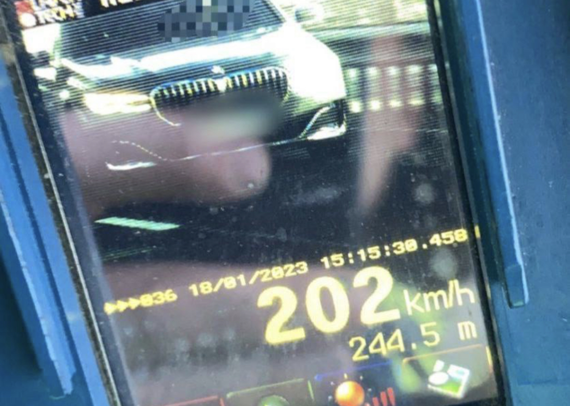 Astăzi polițiștii au surprins un șofer care conducea un BMW cu viteza de 202 km/h, unde limita admisă este de 90 km/h.