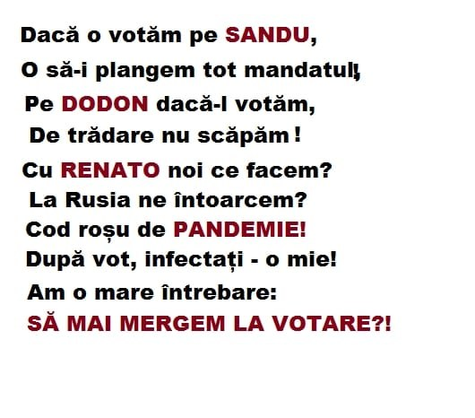 Ecaterina Mîrzenco, o susținătoare aprigă a partidelor de dreapta, a publicat niște versuri despre alegerile, care vor avea loc în data de 1 noiembrie. Din poezie aflăm că aceasta este dezamăgită de principalul candidat proeuropean, Maia Sandu, transmite Telegraph.md, cu referire la Politics.md