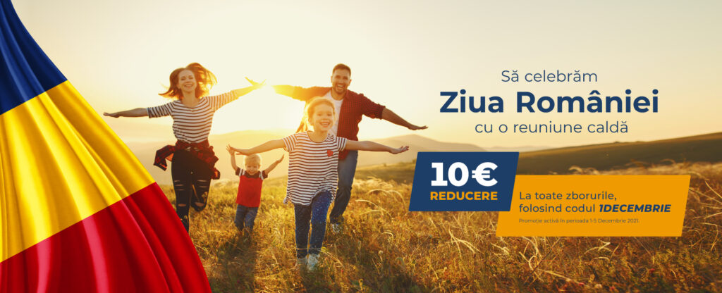 Hai să celebrăm Ziua Națională a României cu o reuniune caldă! HiSky oferă reduceri de -10 euro la TOATE zborurile. Tot ce trebuie să faci, e să introduci promocode-ul „1DECEMBRIE” atunci când faci rezervarea, iar discountul va apărea automat la finalul acesteia.