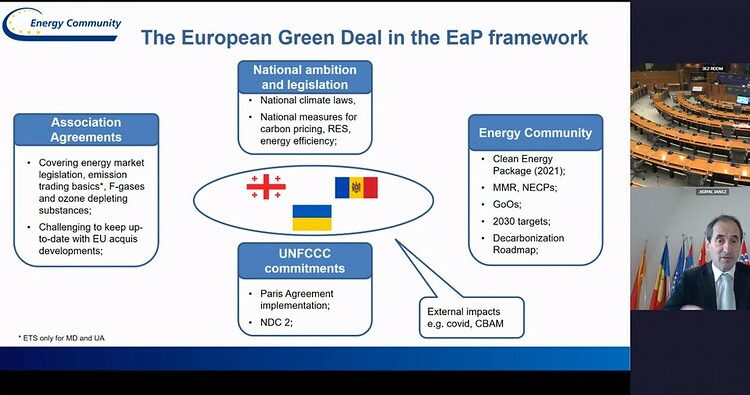 Participanții la reuniune au dezbătut Pactul verde european, impactul acestuia și oportunitățile pentru creșterea securității energetice și durabilității în arealul Parteneriatului Estic. La dezbateri au participat reprezentanți ai Băncii Europene pentru Reconstrucție și Dezvoltare (PERD), Comunității Energetice, Comisiei Europene.