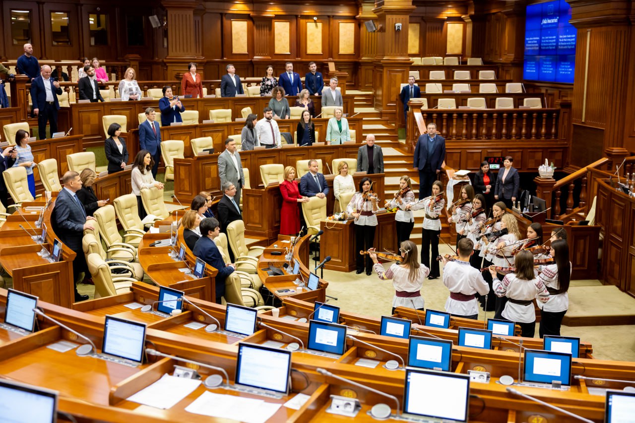 Atmosfera festivă a fost completată de două colective artistice care au colindat deputații: colectivul-model „Frunza Nucului” din satul Inești, raionul Telenești, și grupul de chitariști „UnFolk” din Ungheni. De asemenea, ansamblul „Violino” al Școlii de Arte din satul Pelinia, raionul Drochia, a interpretat Imnul Republicii Moldova, al Uniunii Europene și un colaj de colinde, încheind astfel sesiunea într-un mod simbolic și tradițional.