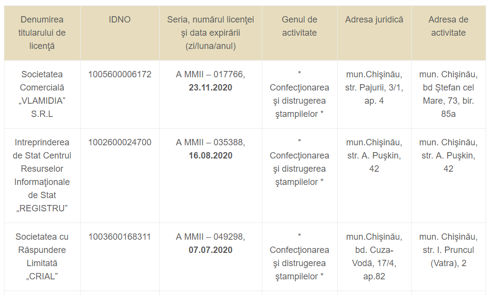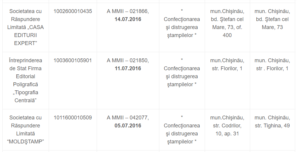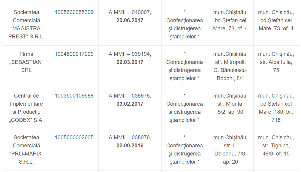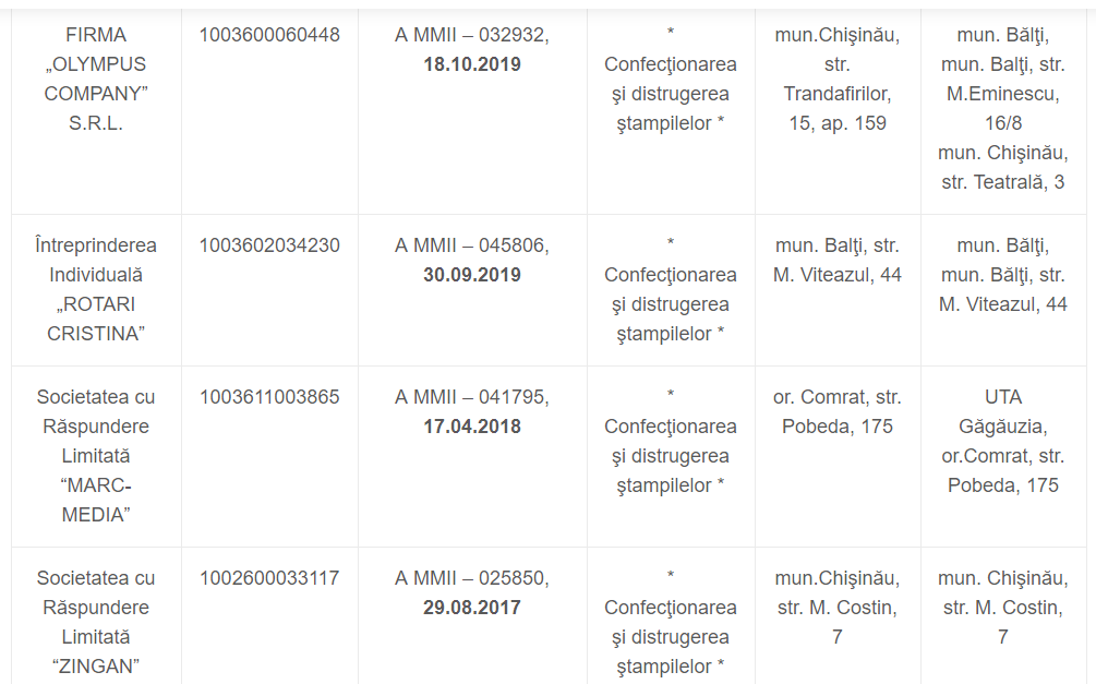 PS: Pentru că linkul cu lista companiilor nu lucrează, le dau mai jos: