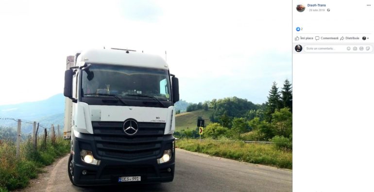 Pe pagina de Facebook a companiei am identificat o fotografie în care apare TIR-ul în care a fost depistată suma impresionantă de bani. Mai mult ca atât, într-o discuție telefonică cu reporterul Deschide.MD, directorul Disofi-Trans SRL, Dina Rusu, a confirmat faptul că V. Gurschi este angajat, dar și că TIR-ul aparține companiei pe care o conduce.