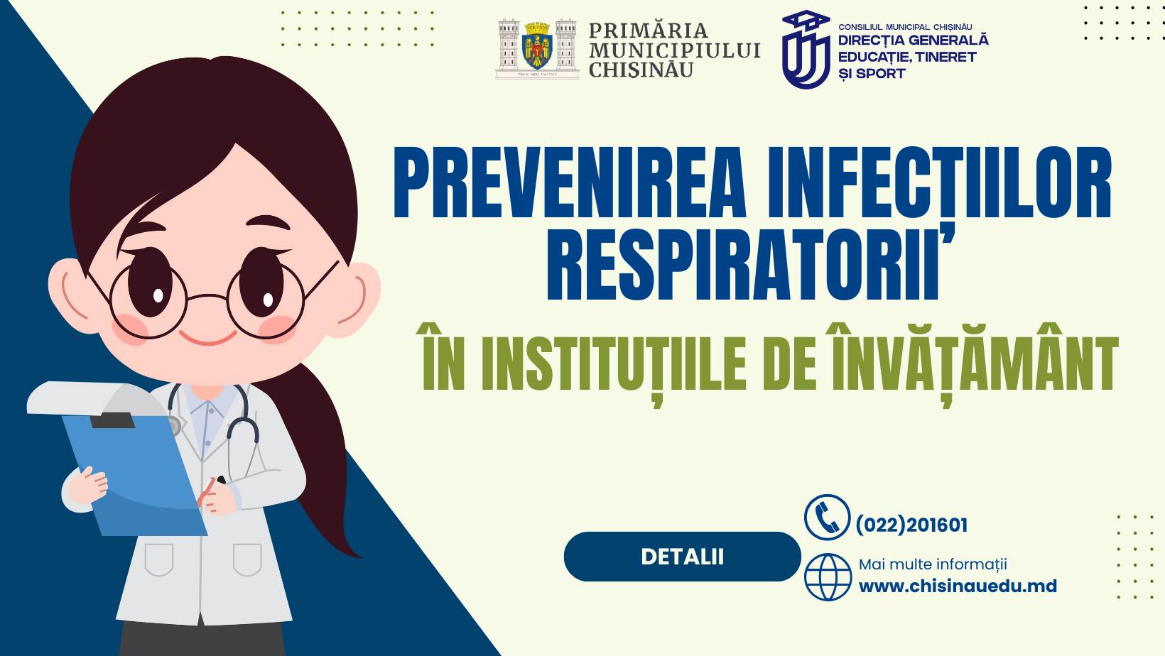 Având în vedere creșterea riscului de îmbolnăvire cu infecții respiratorii, inclusiv cu virusul HMPV, Direcția Generală Educație, Tineret și Sport a Primăriei municipiului Chișinău a făcut un apel către comunitatea educațională să adopte măsuri preventive pentru a proteja sănătatea elevilor, cadrelor didactice și a personalului auxiliar.
