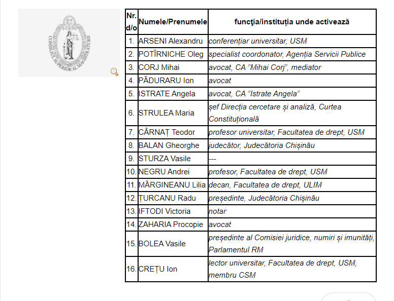 DOC // A fost publicată lista candidaților la funcția de judecător la Curtea Constituțională