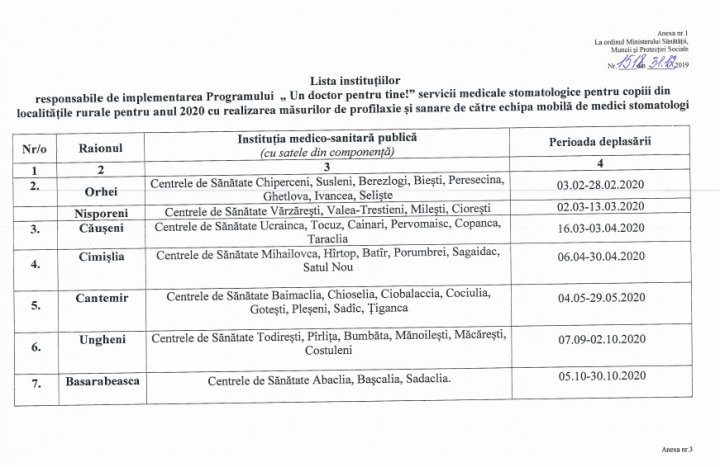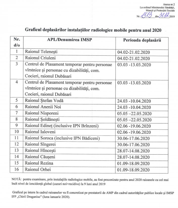 În context, în perioada 03-28 februarie curent, vor fi prestate servicii medicale stomatologice pentru copiii din statele Chiperceni, Susleni, Berezlogi, Biești, Peresecina, Ghetlova, Ivancea, Seliște, ale raionului Orhei, iar de pe 04 până pe 21 februarie, se va organiza screening-ul afecțiunilor pulmonare pentru populația din raioanele Telenești și Criuleni.