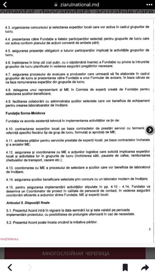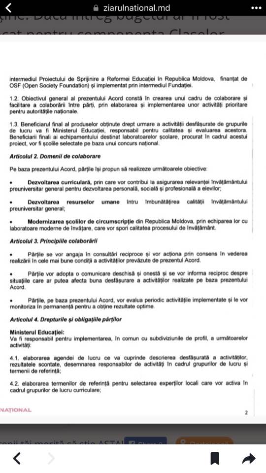 Conform acordului de colaborare dintre Ministerul Educației a Republicii Moldova și Fundația Soros – Moldova, banii urmau să ajungă pentru dezvoltarea sistemului de învățământ. Anume, se dorea dezvoltarea curriculară, dezvoltarea resurselor umane și modernizarea școlilor. De fapt, singurul lucru care s-a schimbat, este curricula școlară, care însă este un proces obișnuit.