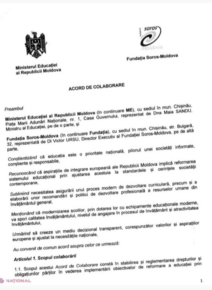 Conform acordului de colaborare dintre Ministerul Educației a Republicii Moldova și Fundația Soros – Moldova, banii urmau să ajungă pentru dezvoltarea sistemului de învățământ. Anume, se dorea dezvoltarea curriculară, dezvoltarea resurselor umane și modernizarea școlilor. De fapt, singurul lucru care s-a schimbat, este curricula școlară, care însă este un proces obișnuit.