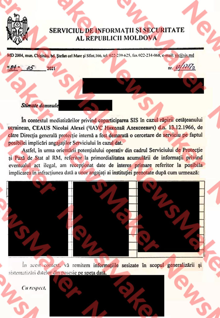 Nota spune că, în legătură cu informațiile care au apărut în spațiul public despre complicitatea SIS la răpirea fostului judecător, cetățeanul ucrainean Mykola Chaus, Departamentul de Securitate Internă a început o anchetă cu privire la posibila implicare a ofițerilor SIS în această caz.
