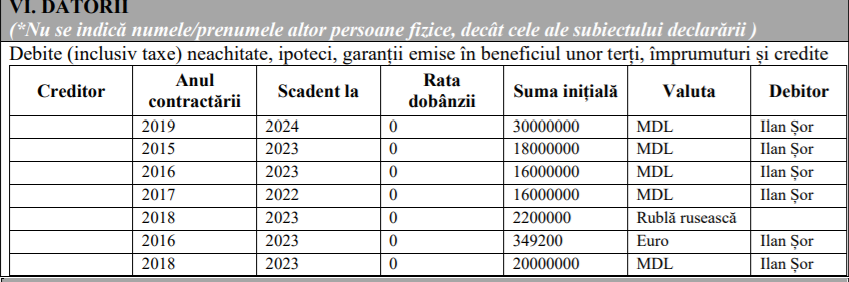 Declară salarii de la Parlament, Primăria Orhei, trei apartamente, o casă de peste 4 milioane de lei și mai multe automobile, dintre care două mașini Bentley. Este vorba de liderul Partidului Șor, Ilan Șor, care este în fruntea listei electorale a formațiunii. Mai mult, acesta declară și datorii impresionante, informează TV8.md