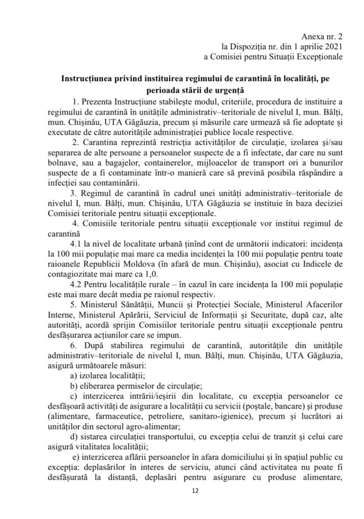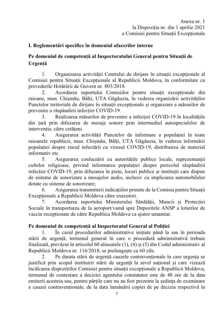 DOC // DISPOZIȚIA nr. 1 din 1 aprilie 2021 a Comisiei pentru Situații Excepționale a Republicii Moldova