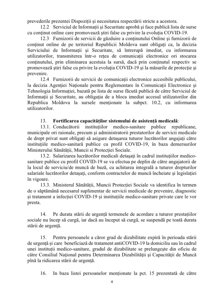 Comisia pentru Situații Excepționale s-a întrunit în ședință. Membrii CSE au examinat mai multe propuneri de măsuri restrictive venite din partea instituțiilor statului și le-au evaluat din punct de vedere financiar, juridic, economic și social. Așadar, Comisia a decis să impună măsuri urgente care ar reduce contactul fizic și ar limita răspândirea virusului Covid-19 pe teritoriul Republici Moldova.