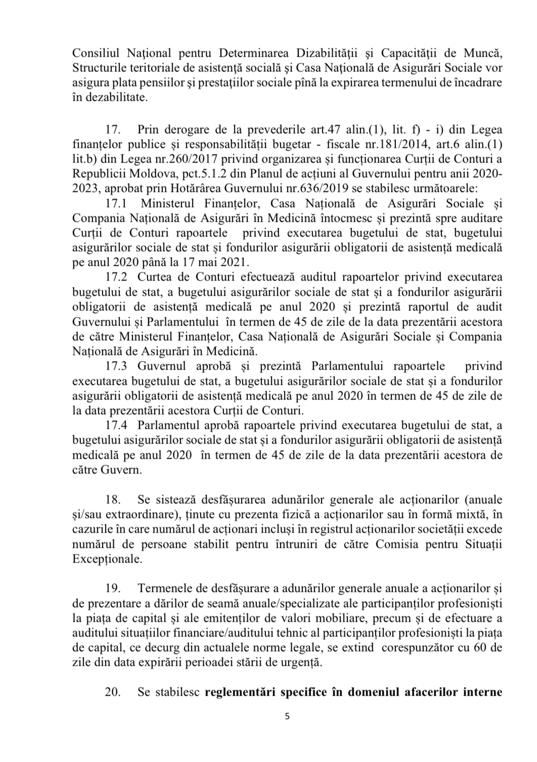 Comisia pentru Situații Excepționale s-a întrunit în ședință. Membrii CSE au examinat mai multe propuneri de măsuri restrictive venite din partea instituțiilor statului și le-au evaluat din punct de vedere financiar, juridic, economic și social. Așadar, Comisia a decis să impună măsuri urgente care ar reduce contactul fizic și ar limita răspândirea virusului Covid-19 pe teritoriul Republici Moldova.