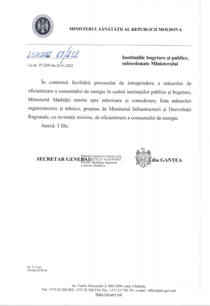 Situație fără precedent. Ministerul Sănătății le-a cerut managerilor de spitale să reducă la maxim consumul de resurse energetice. Mai exact, în toate instituțiile publice, care se subordonează ministerului, se cere să fie oprită apa caldă, lumina, iar temperatura aerului să nu depășească 19°C. O scrisoare în acest sens a fost expediată către toate instituțiile din subordinea ministerului. Documentul se numește „Măsuri organizatorice și tehnice, cu investiții minime, de eficientizarea consumului de energie în instituțiile publice”, și a fost publicat pe canalul de Telegram INDEX.