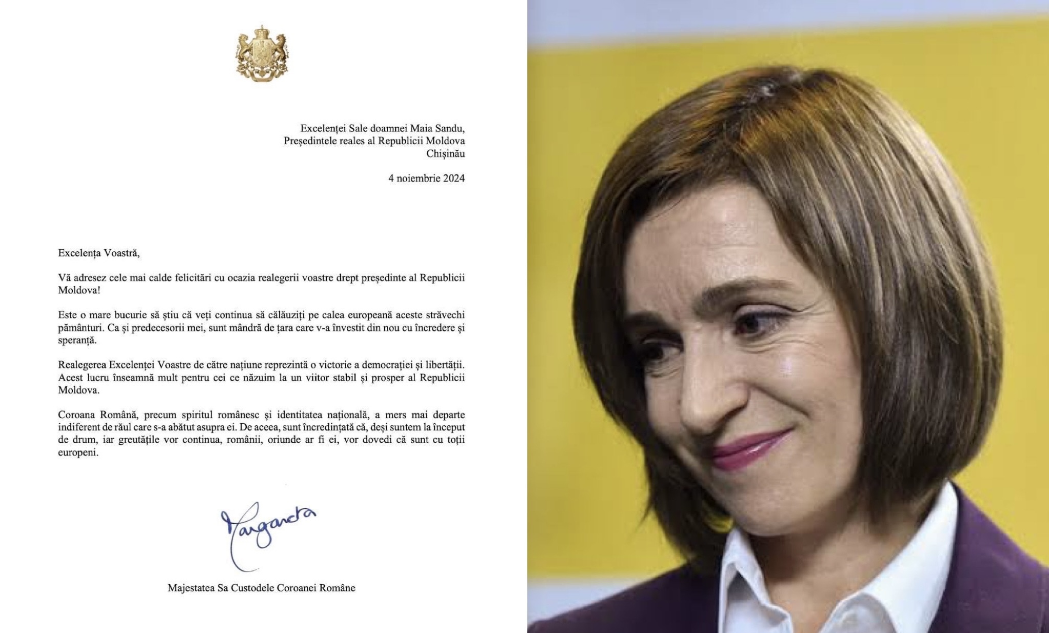 În această dimineață, Majestatea Sa Margareta, Custodele Coroanei, i-a adresat o scrisoare de felicitare doamnei Maia Sandu, președintele reales al Republicii Moldova, exprimându-și bucuria și susținerea pentru continuarea drumului european al Moldovei.