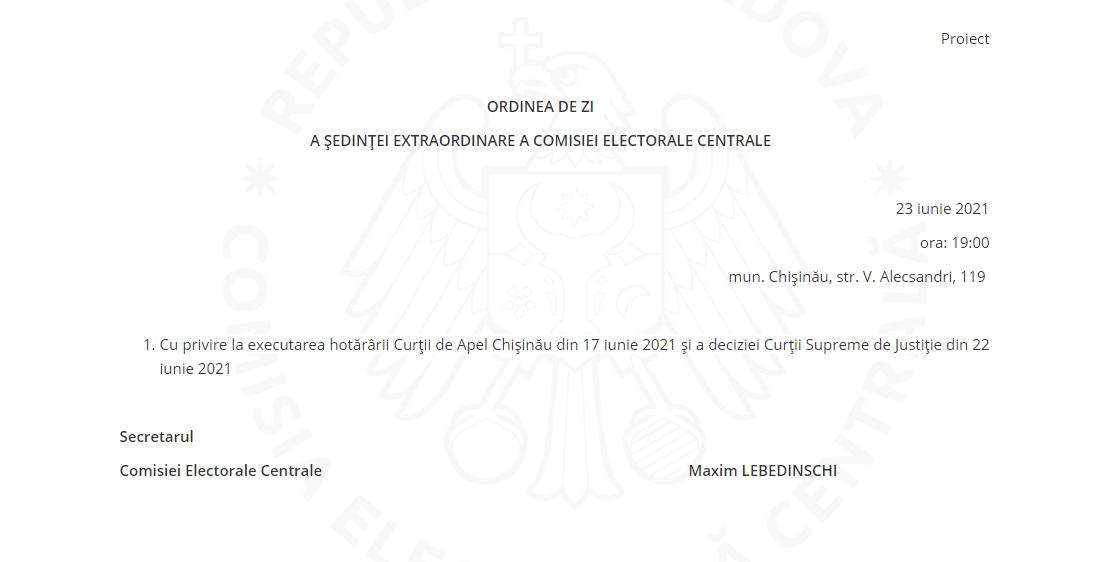 Potrivit ordinei de azi, membrii CEC se întrunesc la ora 19.00, cu următoarea ordine de zi: