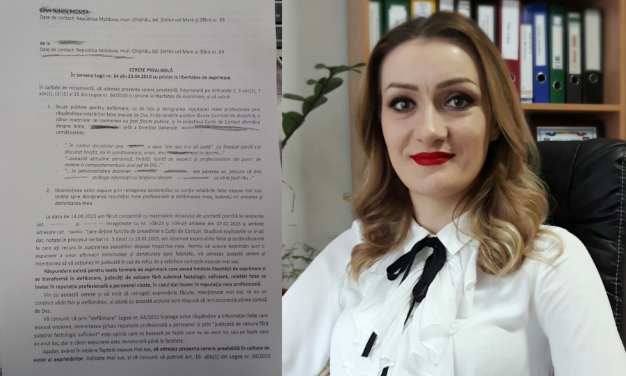 „Am spus adevărul la Comisia de disciplină, așa cum am făcut mereu în viață și voi continua să condamn abuzurile și teroarea. Chiar dacă par o doamnă de fier, rămân oricum femeie în suflet și vreau ca oamenii să fie buni și corecți. Într-o zi obișnuită, m-am pomenit cu o cerere prealabilă și ulterior și cu o chemare în judecată, pentru simplul motiv că am spus adevărul la Comisia de disciplină a Curții de Conturi despre comportamentul inadecvat și condamnabil al acestei „șefe” de direcției generală. Care așa face presiune asupra mea, cu scopul de a-mi retrage cele spuse despre dumneaei în cadrul procedurii disciplinare interne”, scrie angajata CCRM.