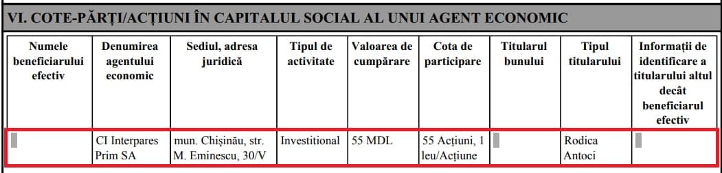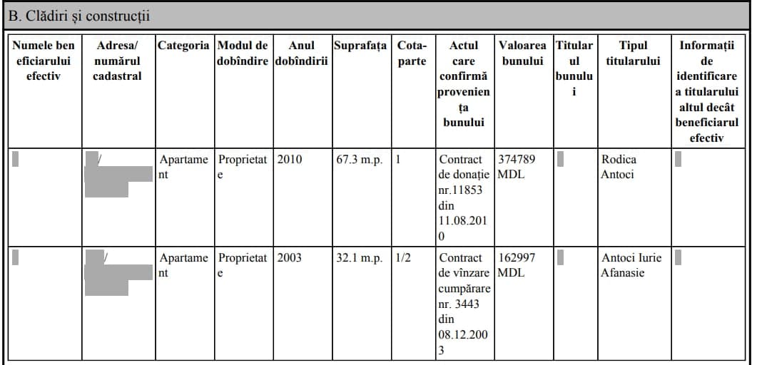 Familia Antoci deține un automobil marca Toyota Avensis și acțiuni la o companie imobiliară, sediul căreia se află în centrul Capitalei.