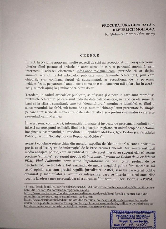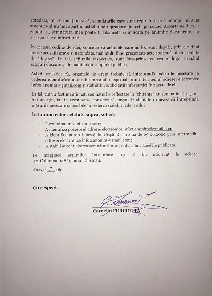 Deputatul socialist, Corneliu Furculiță a adresat o solicitare Procuraturii Generale să investigheze informația răspândită în spațiul public, cu pretinsele „chitanțe” de pe foițe, transmite Telegraph.md