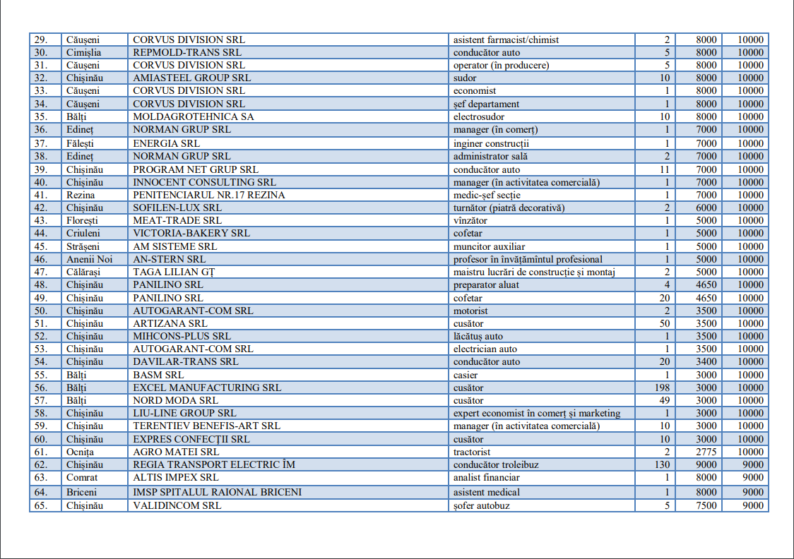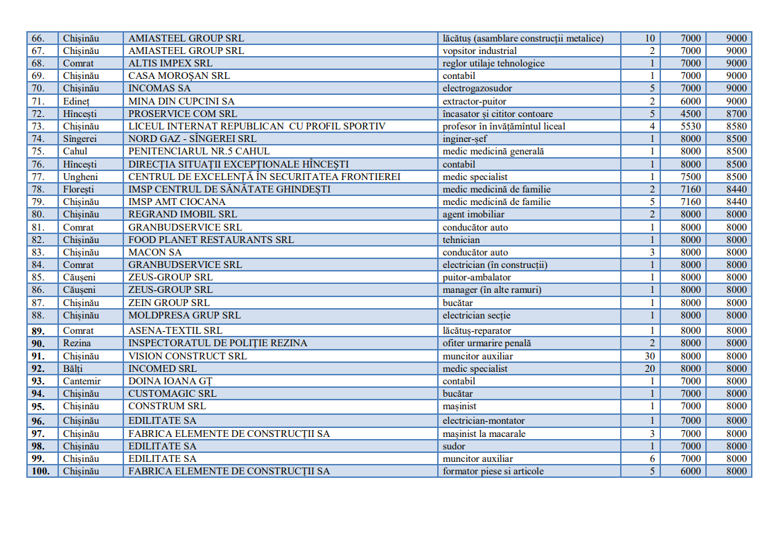 De asemenea și pentru sudori, cusători, contabili, conductori, bucătari, medici sunt mai multe posturi vacante, unde salariul începe de la 8000 și până la 10.000 de lei.