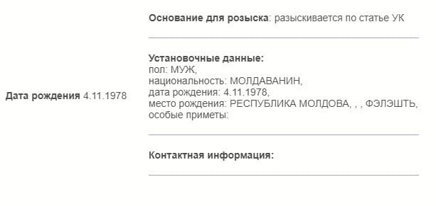 Drept răspuns la această căutare pe site-ul Ministerului de Interne din Rusia nu se precizează motivul căutării, sau articolul în baza căruia este acesta căutat, însă este inclusă remarca „în baza unui articol al Codului Penal”. Rezultatul a fost generat în urma căutării în baza numelui lui Renato Usatîi.