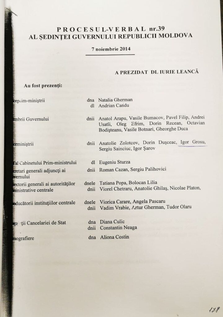 Toate declarațiile lui Bogdan Țîrdea sunt confirmate de documente. Astăzi, deputatul a prezentat o copie a procesului-verbal al ședinței guvernului, nr. 39 din 7 noiembrie 2014.
