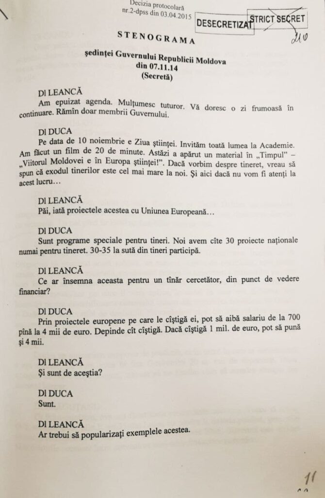 În cadrul acestei ședințe, a fost aprobată o hotărâre secretă, nr. 938 din 13 noiembrie 2014, prin care guvernul Leancă a aprobat prima tranșă în valoare de 9,5 miliarde de lei pentru cele trei bănci problematice – BEM, Unibank, Banca Socială.