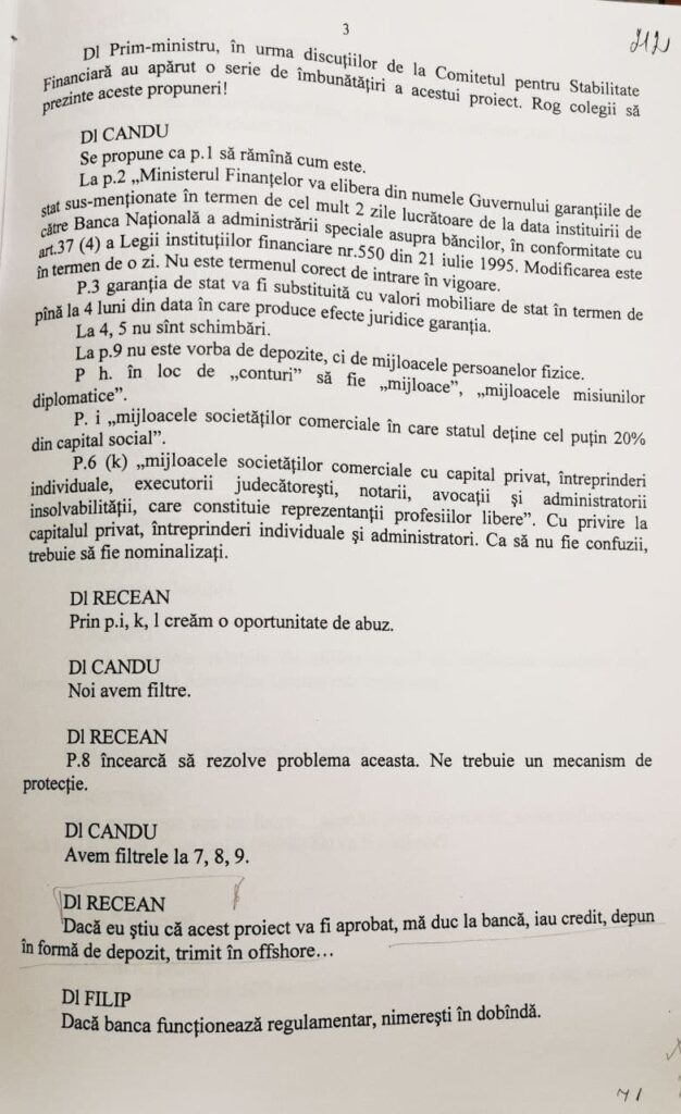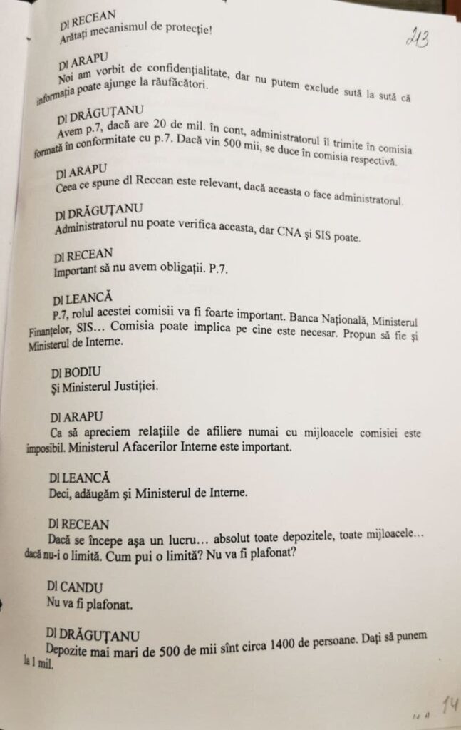 Proiectul a fost prezentat de către Drăguțanu – guvernatorul Bancii Nationale a Moldovei, fiind susținut de Candu, Filip, Arapu! Aceștia dădeau asigurări că există filtre, că SIS și Banca Națională vor monitoriza banii.