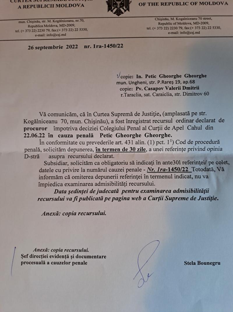 Astfel, procurorii au contestat decizia CA Cahul la Curtea Supremă de Justiție. Activistul civic se arată indignat de acest fapt și vine și cu un apel către Procurorul General interimar, Dumitru Robu. „Liniștiți-vă cățeii, da, da, pe bune cățeii, pe mine nimic nu mă mai doare. Cu cât mai mult vă umflați în pene, domnilor Procurori, cu atât Republica Moldova îmi va plăti prejudiciu mai mult”, a scris Petic, într-o postare pe pagina sa de Facebook, scrie unimedia.info