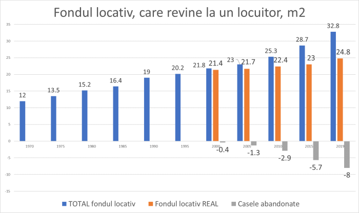 Suprafața reală de locuit s-au îmbunătățit de 2 ori în ultimii 50 de ani