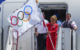 Primarul metropolei californiene, Karen Bass, a aterizat la bordul unui avion pe care erau imprimaţi palmieri şi sigla ”LA 2028”, înainte de a defila pe pistă cu steagul cu cele cinci cercuri olimpice, în compania mai multor sportivi americani, sub un soare strălucitor.