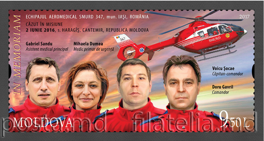 Poșta Moldovei a surprins prin faptul că a emis o serie de mărci poștale care au în prim plan cei 4 membri ai echipajului SMURD căzut la datorie.