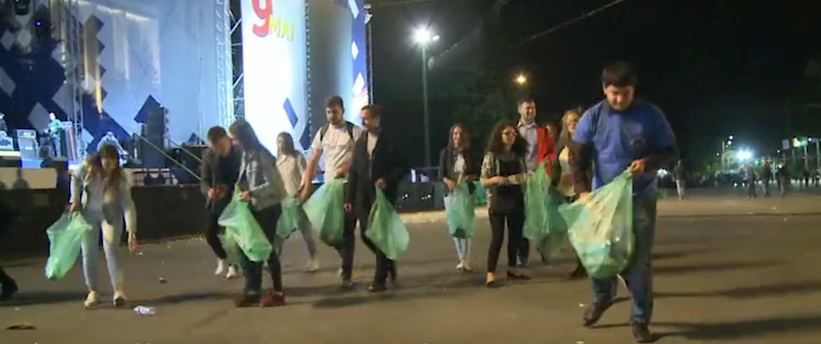 Tinerii s-au mobilizat în așa fel încât timp de 15 minute Piața era deja curată, transmite Publika.