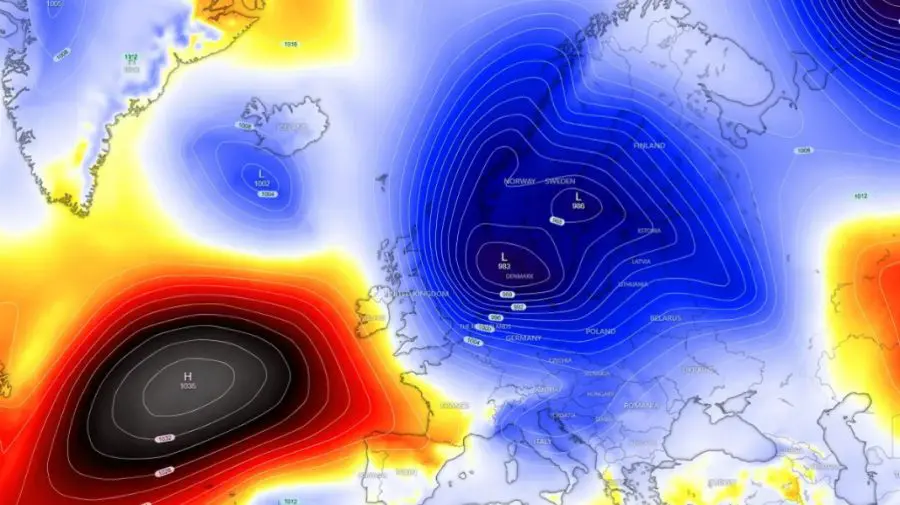 După trecerea furtunii Benjamin, un sistem de presiune joasă se va adânci în nordul continentului, iar deasupra Atlanticului se va consolida un câmp de înaltă presiune. Această combinație va genera o circulație atmosferică dinspre sud-vest, împingând aer cald și foarte umed către centrul și sudul Europei, fenomen numit de meteorologi „dipol atlantic-european”, tipic toamnei.