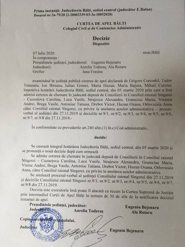 Amintim că președintele raionului Sîngerei, Gheorghe Corcodel, a rămas fără funcție în urma unei decizii a instanței privind anulare a procesului-verbal prin care a fost ales la conducerea raionului. Acesta a părăsit Partidul Democrat și a aderat la grupul PRO Moldova în martie curent.