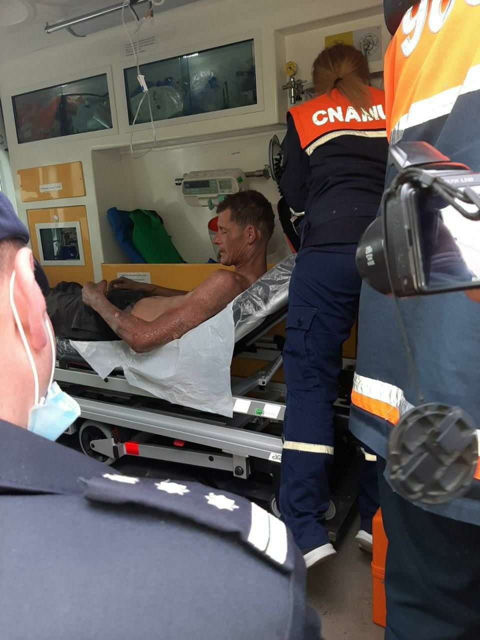 În aproximativ 25 de minute bărbatul a fost convins să coboare și a fost preluat de către ambulanță.