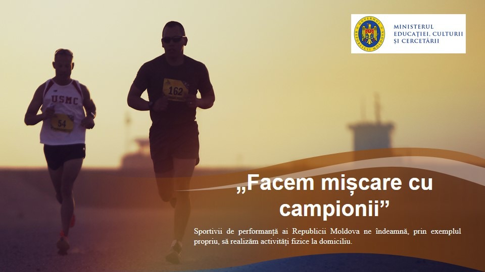 Menționăm că acțiunea „Facem mișcare cu campionii” va fi continuată și de către alți sportivi. Materialele video vor fi postate pe pagina de youtube și Facebook a Ministerului Educației, Culturii și Cercetării.