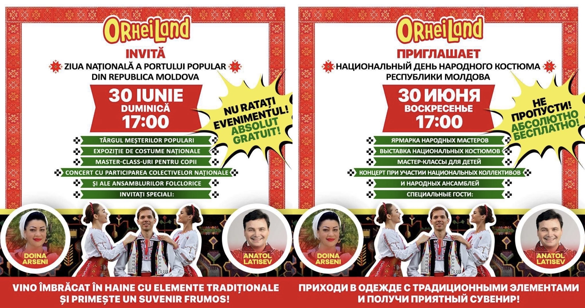 OrheiLand onorează tradițiile și se pregătește și pentru un festival de neuitat dedicat costumului național. Evenimentul va avea loc pe 30 iunie și va reuni meșteri populari talentați. Sunt planificate expoziții de costume naționale autentice și multe alte surprize pentru vizitatori.