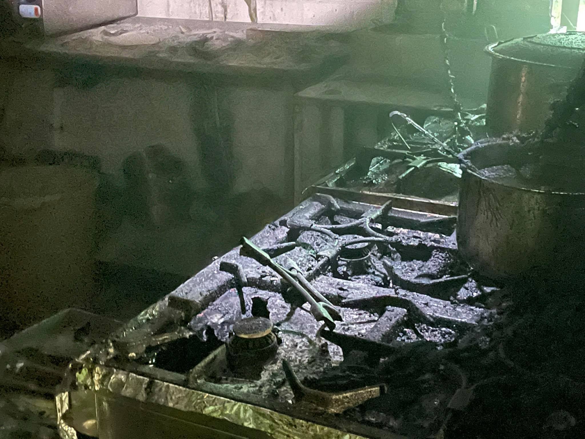 În urma incendiului flăcările au distrus mai multe bunuri materiale din interiorul bucătăriei localului.